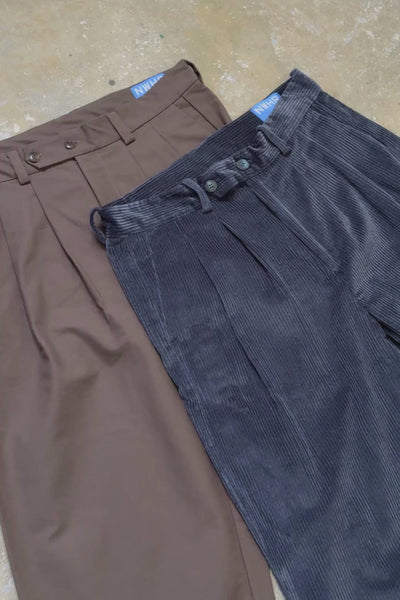 Pantalón chino relaxed fit con pinzas. Fabricado en algodón orgánico en Galicia, España.